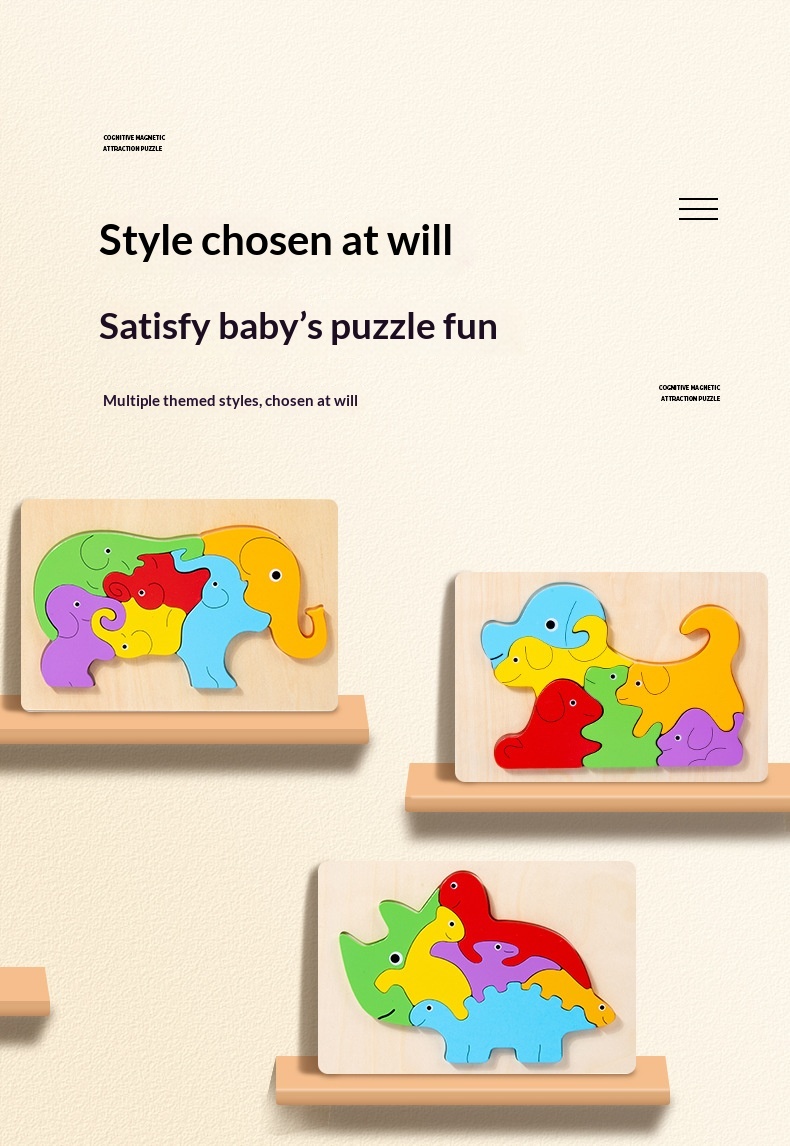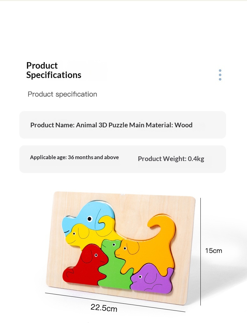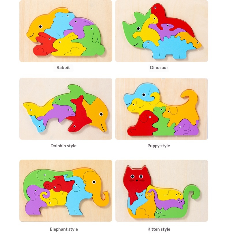 Product information:Colors: Dinosaur, Rabbit, Dolphin, Puppy, Elephant, Kitten Suitable age: Children (4–6 years) Material: Wood Packaging: Blister pack Category: Puzzle/Insert Toy Packing list:...