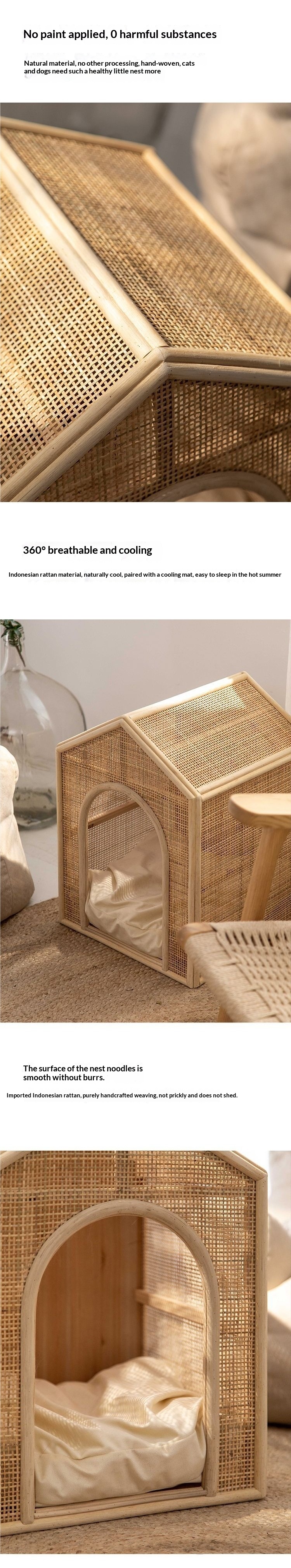 Woven Rattan Cat Bed And Cat House For Summer Ventilation Pet Nest