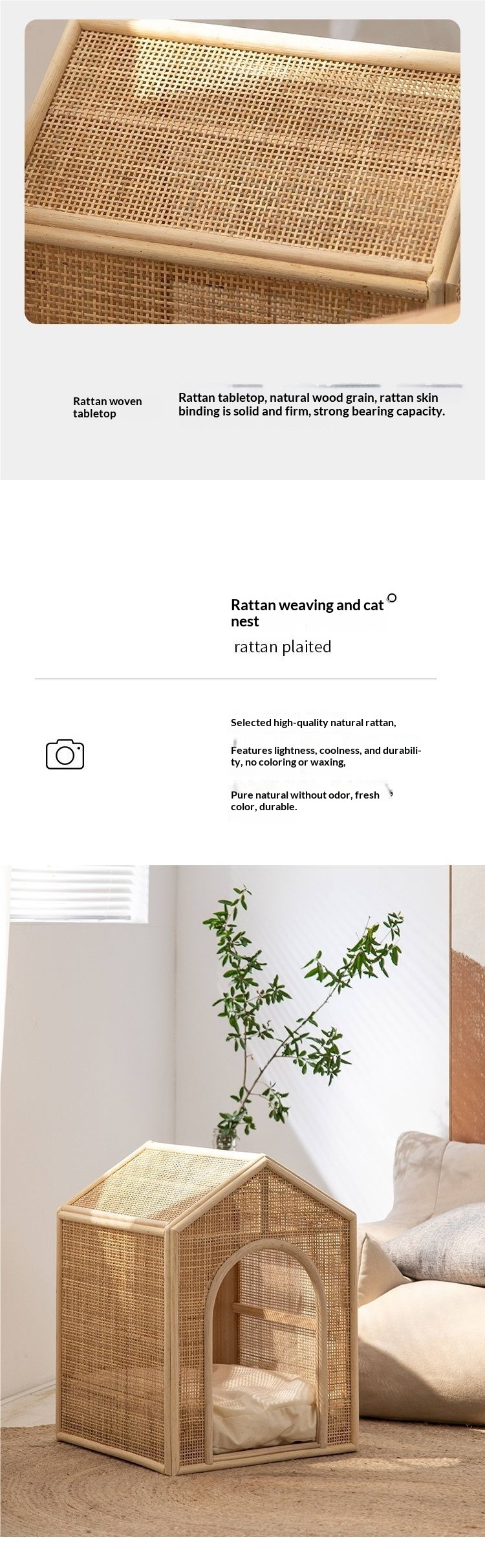 Specifications: Woven rattan cat bed