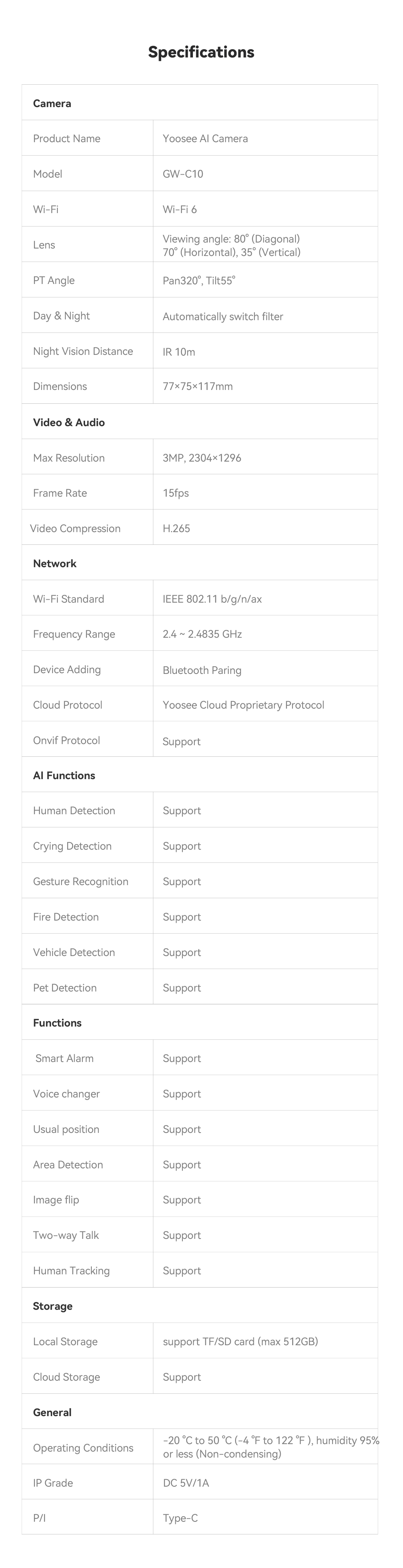 Yoosee AI Camera C10 3MP/2K 360° Coverage AI Box Human/Pet Detection Fire Detection H.265 Smart Tracking Gesture Recognition Baby Crying Detection Night Vision Two-way Talk Support Onvif S...