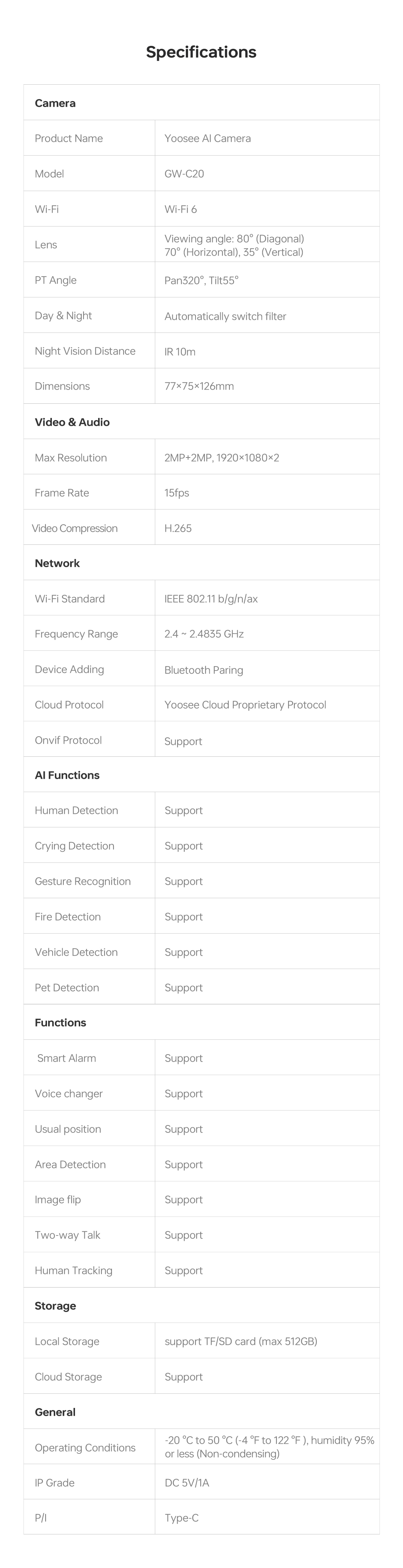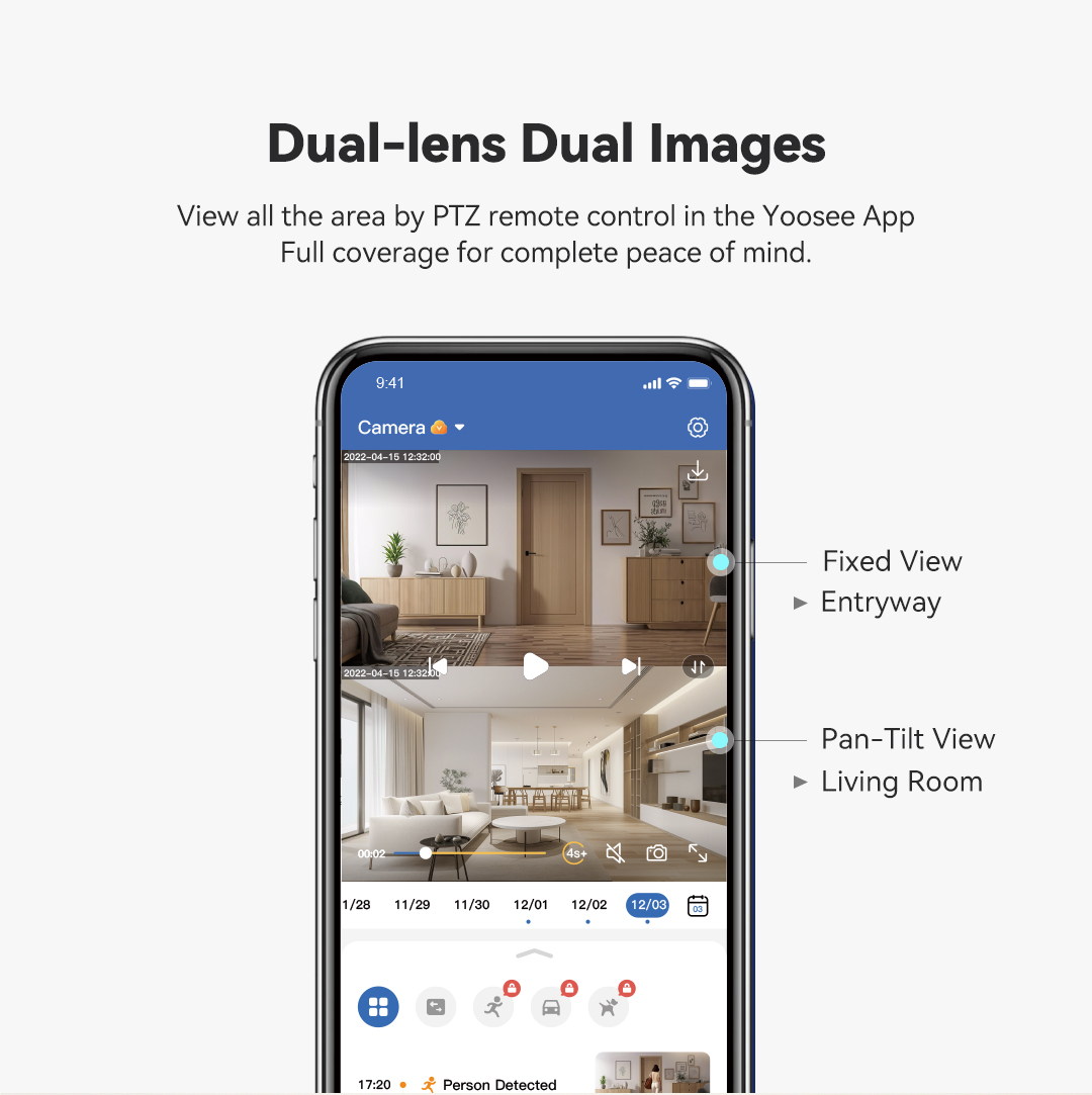 Yoosee AI Camera C20 2MP*2/2.5K Dual Image 360° Coverage AI Box Human/Pet Detection Fire Detection H.265 Smart Tracking Gesture Recognition Baby Crying Detection Night Vision Two-way Talk...