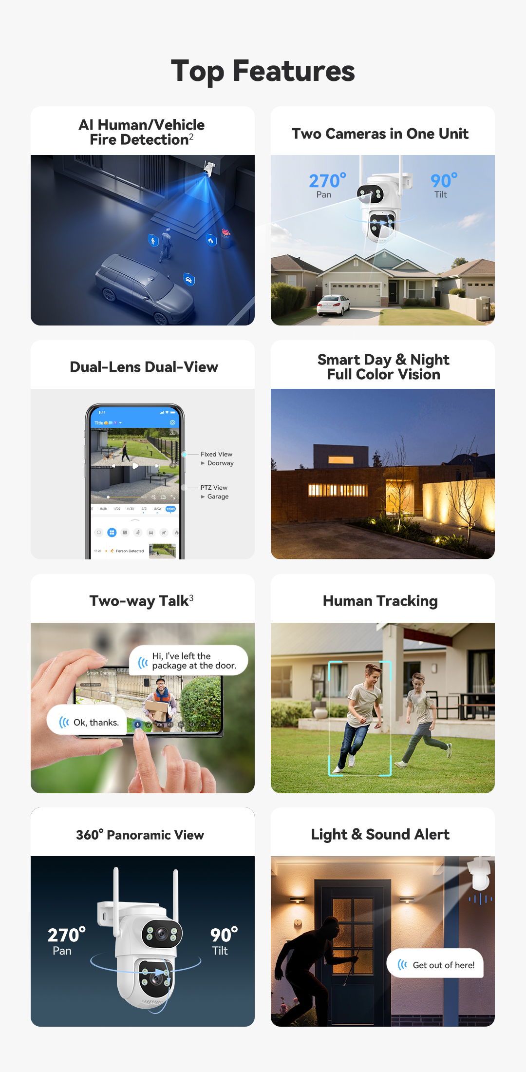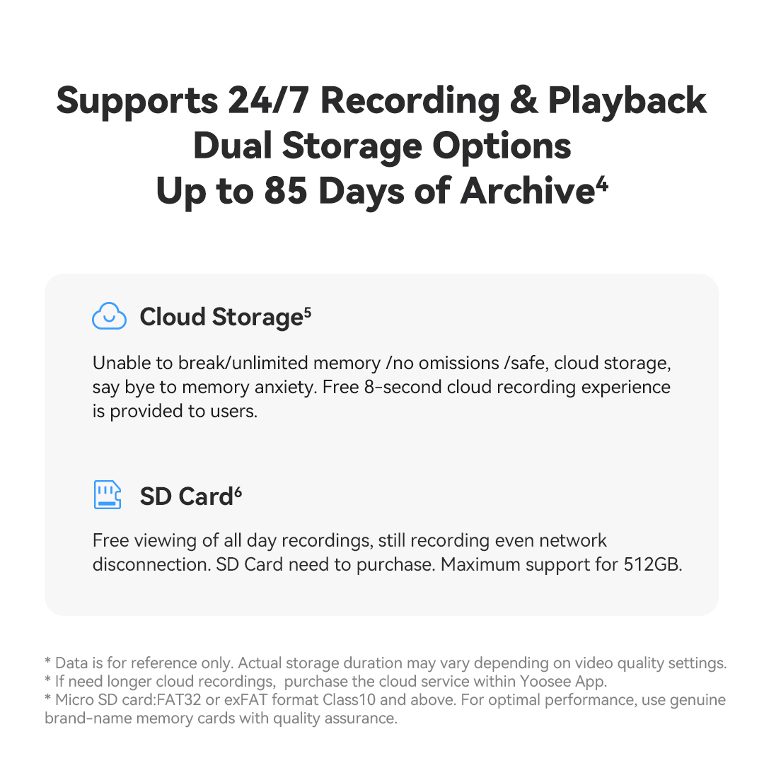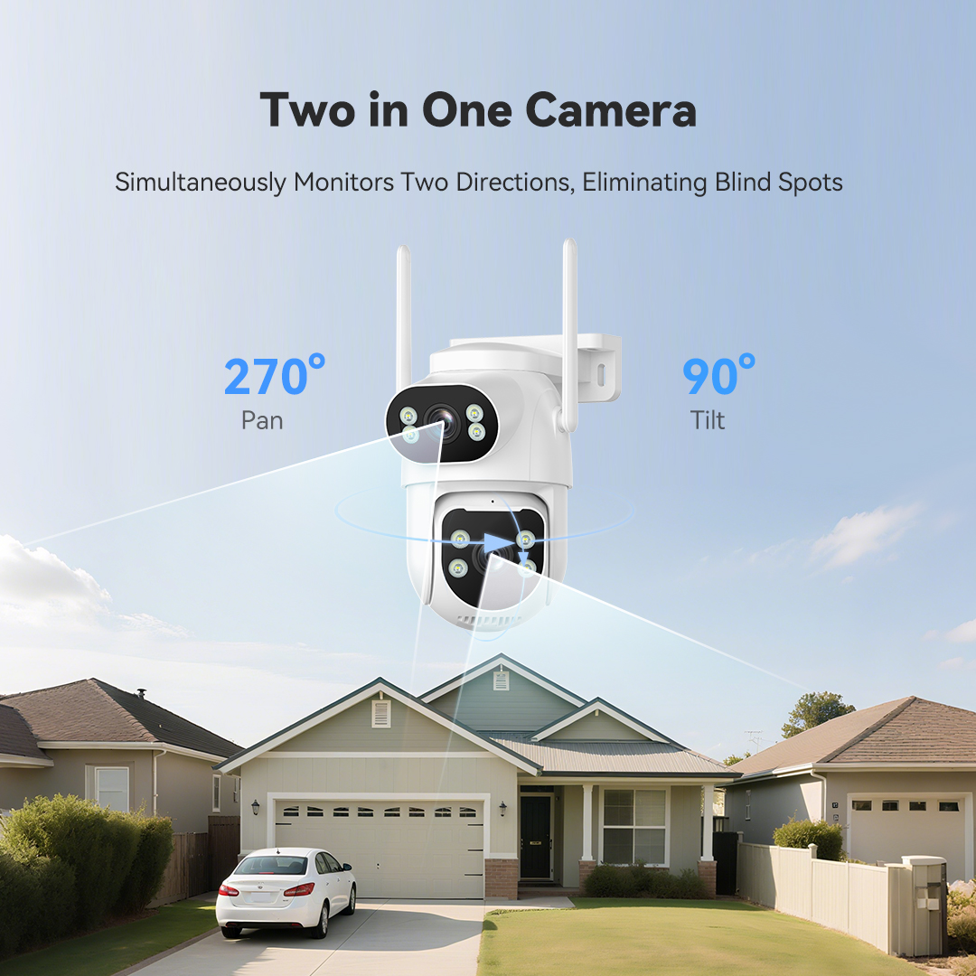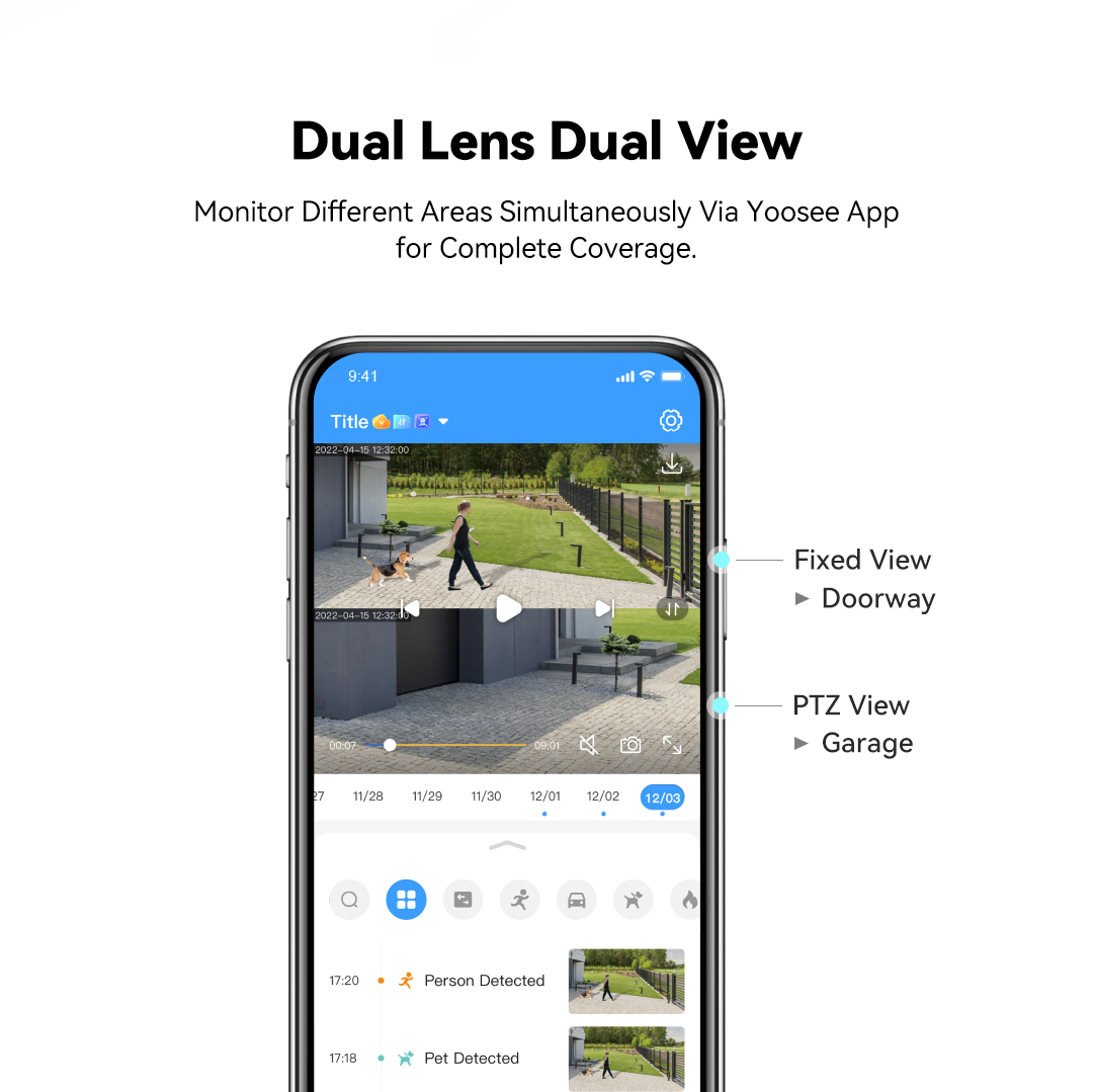 Yoosee AI Outdoor Camera A20 2*2MP/2.5K Smart Colorful Night Vision Sound&Light Alerts 360° Coverage Human/Pet Detection Smart Tracking Two-way Talk Support Onvif SD card up to 512GB Clou...