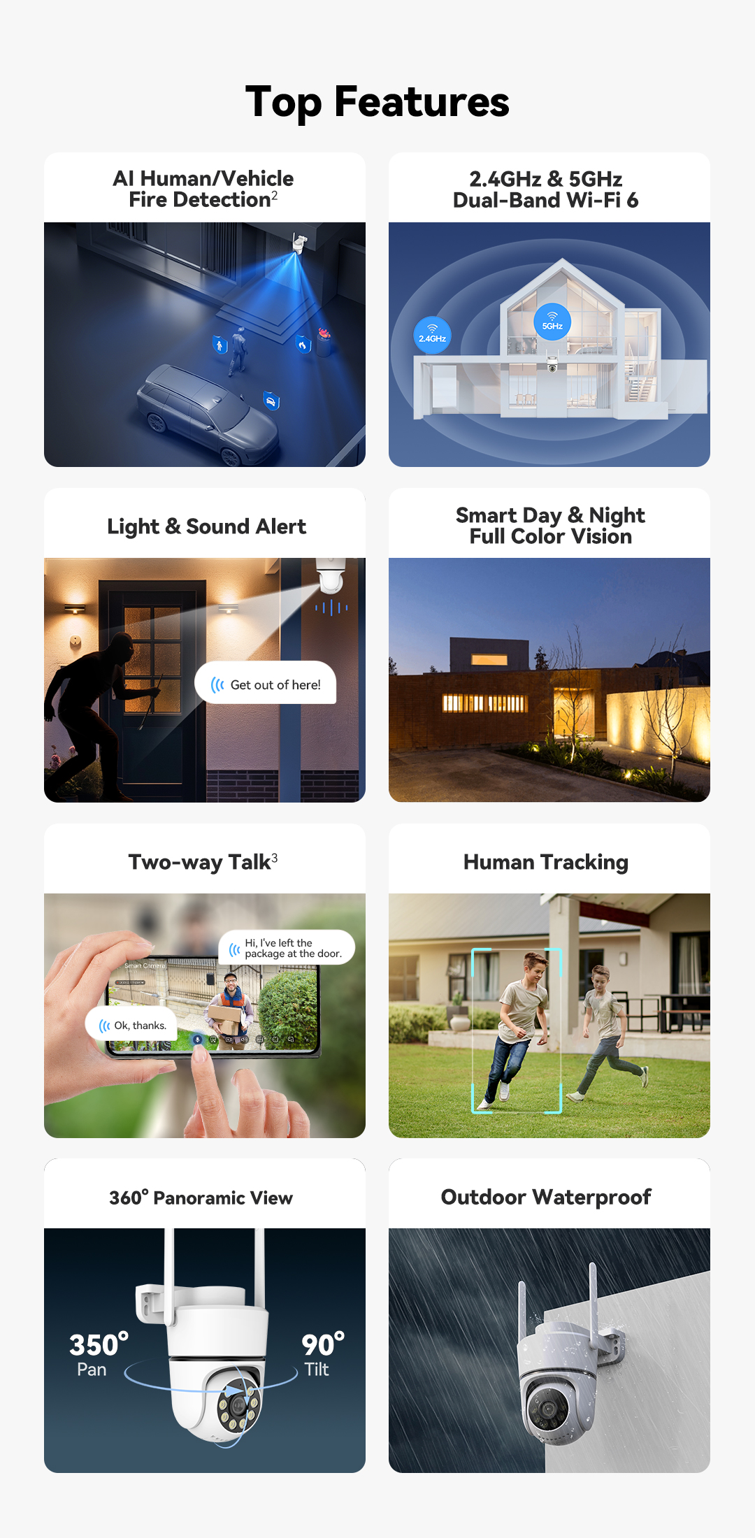 Yoosee AI Outdoor Camera A10 3MP/2K 360° Coverage AI Box Human/Pet Detection Fire Detection H.265 Smart Tracking Gesture Recognition Baby Crying Detection Night Vision Two-way Talk Support...